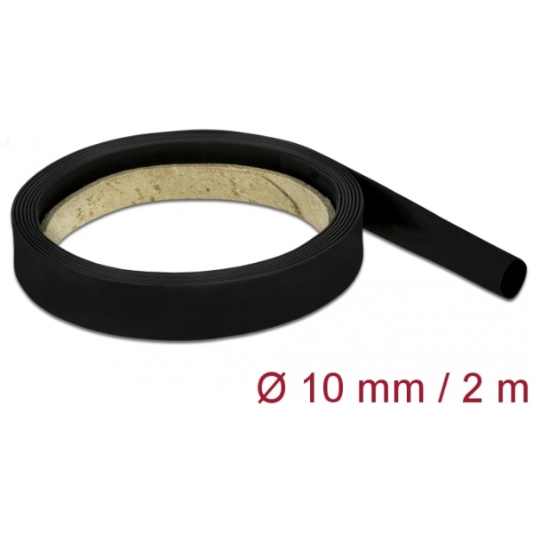 DELOCK Θερμοσυστελλόμενο μονωτικό για καλώδια 18981, 2mx10mm, 2:1 μαύρο