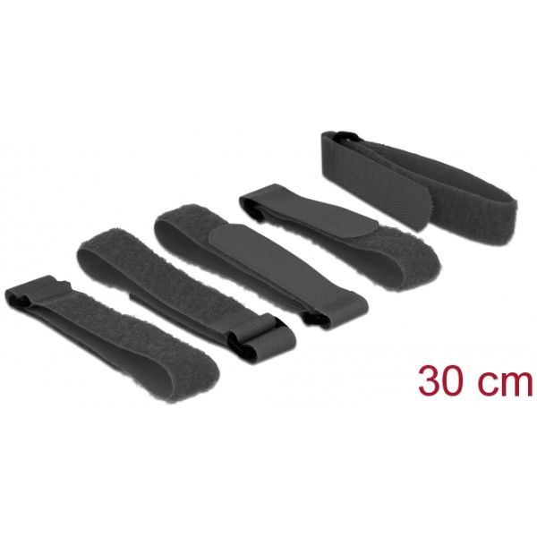 DELOCK ιμάντες τύπου Velcro 19560, 26 x 3.8cm, μαύρος, 5τμχ