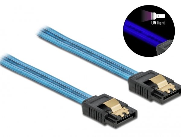 POWERTECH Καλώδιο SATA III 7pin CAB-W037, με UV επίστρωση, 0.7m, μπλε