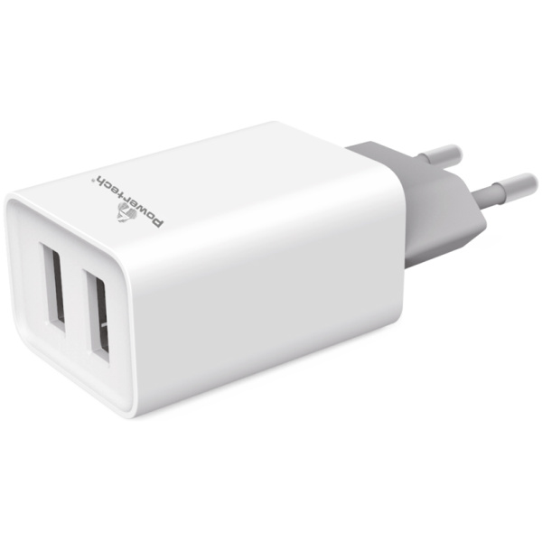 POWERTECH φορτιστής τοίχου PT-778, 2x USB, 2.1A, λευκός