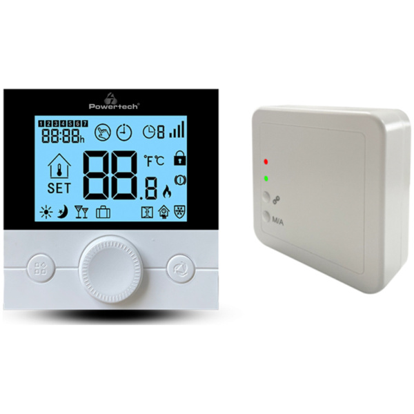 POWERTECH ψηφιακός θερμοστάτης χώρου PT-1046, αερίου, RF, λευκός