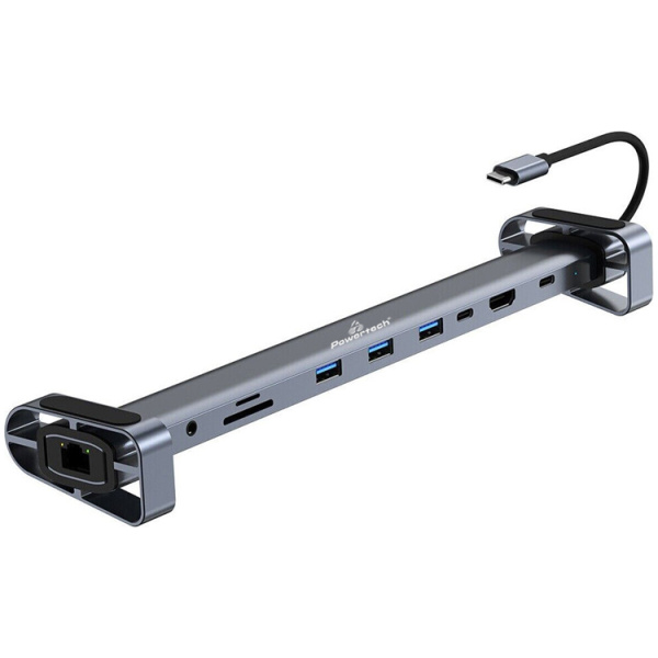 POWERTECH docking station PTR-0152, 10 θυρών, βάση laptop, USB-C, γκρι