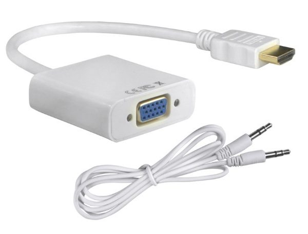 POWERTECH αντάπτορας HDMI σε VGA CAB-H072, καλώδιο 3.5mm, 0.20m, λευκός