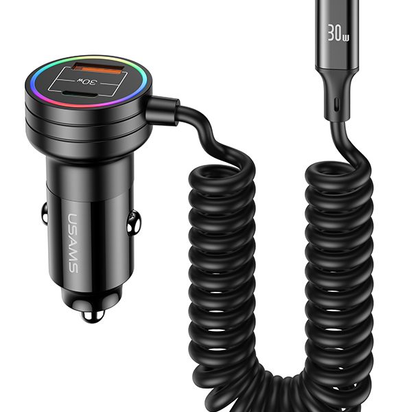 USAMS φορτιστής αυτοκινήτου US-CC192 με καλώδιο, USB/USB-C, 60W, μαύρος
