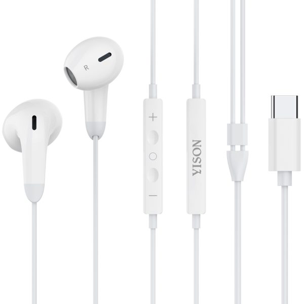 YISON earphones με μικρόφωνο X8, USB-C σύνδεση, Φ13mm, 1.2m, λευκά