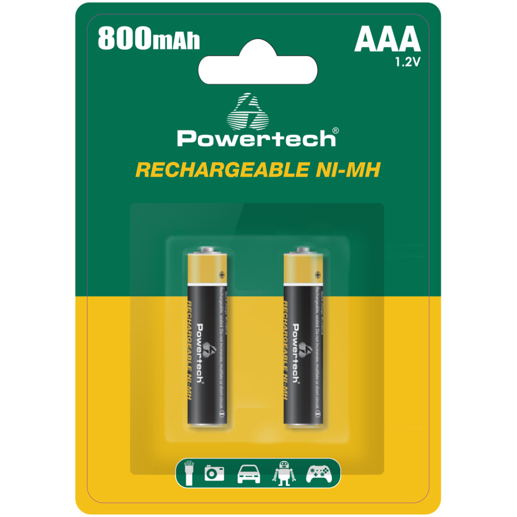 POWERTECH επαναφορτιζόμενες μπαταρίες NI-MH PT-1403, AAA, 800mah, 1.2V, 2τμχ