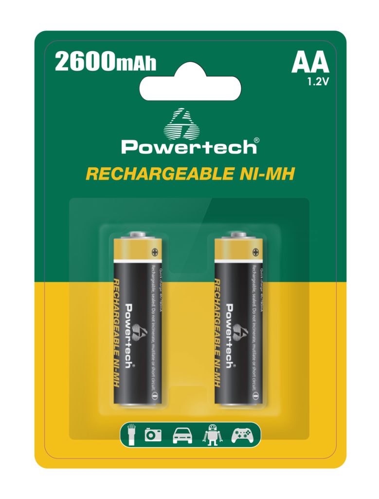 POWERTECH επαναφορτιζόμενες μπαταρίες NI-MH PT-1404, AA, 2600mah, 1.2V, 2τμχ