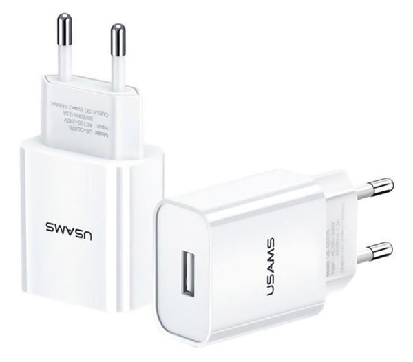USAMS φορτιστής τοίχου T20, 2x USB, 2.1A, λευκός