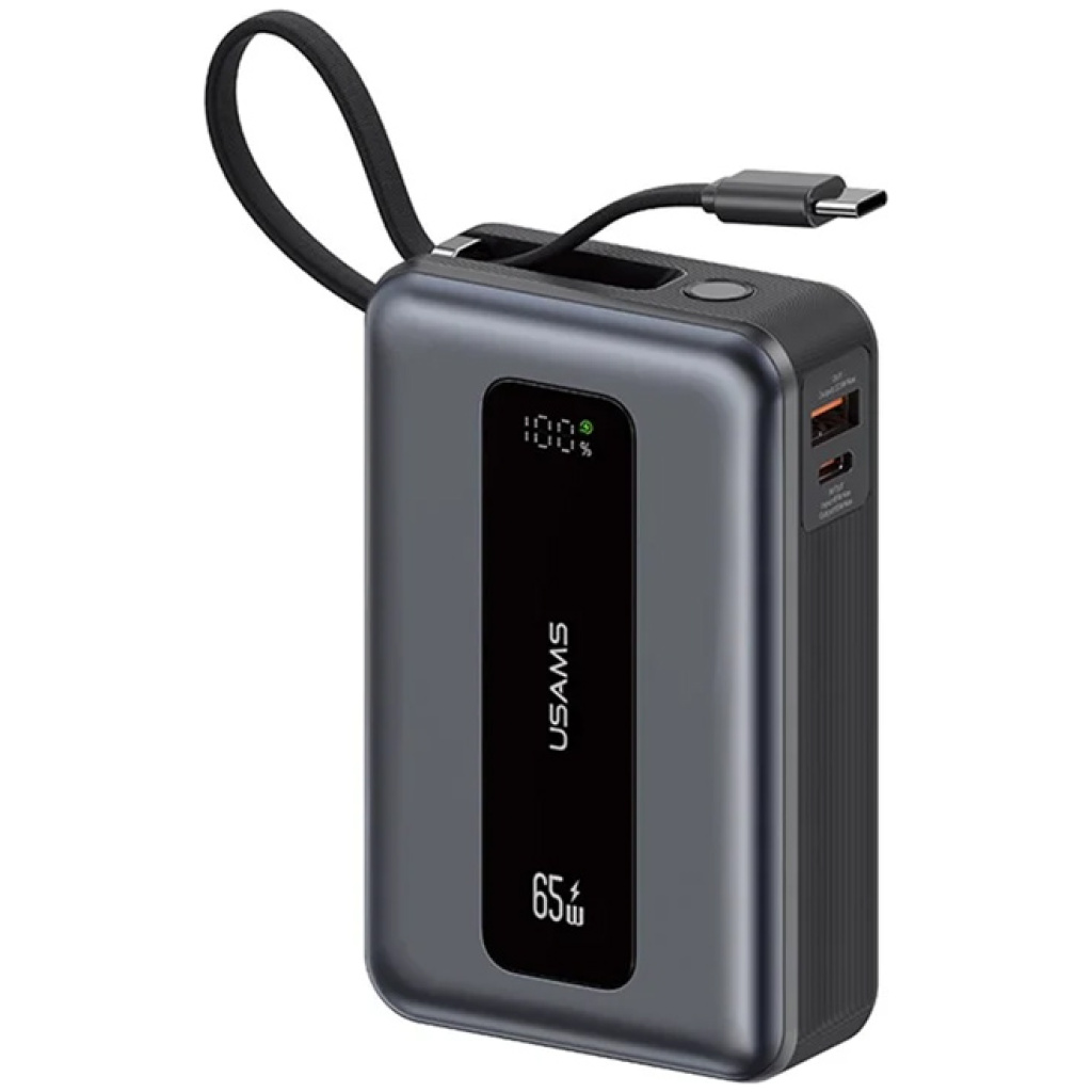 USAMS power bank CD243 με καλώδιο USB-C, 2x θύρες εξόδου, 20000mAh, 65W, γκρι