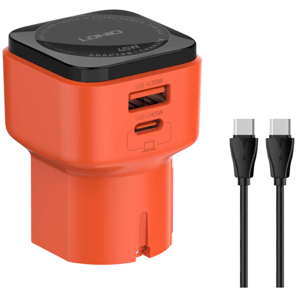 LDNIO φορτιστής τοίχου Q2420 με καλώδιο, USB/USB-C, 45W, universal πρίζα, πορτοκαλί