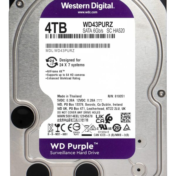 WD σκληρός δίσκος 3.5" Purple Surveillance 4TB, 256MB, 5400RPM, SATA III