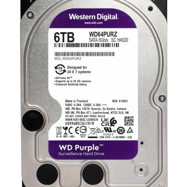 WD σκληρός δίσκος 3.5" Purple Surveillance 6TB, 256MB, 5400RPM, SATA III
