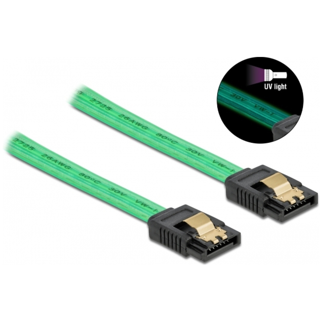 POWERTECH Καλώδιο SATA III 7pin CAB-W036, με UV επίστρωση, 0.7m, πράσινο