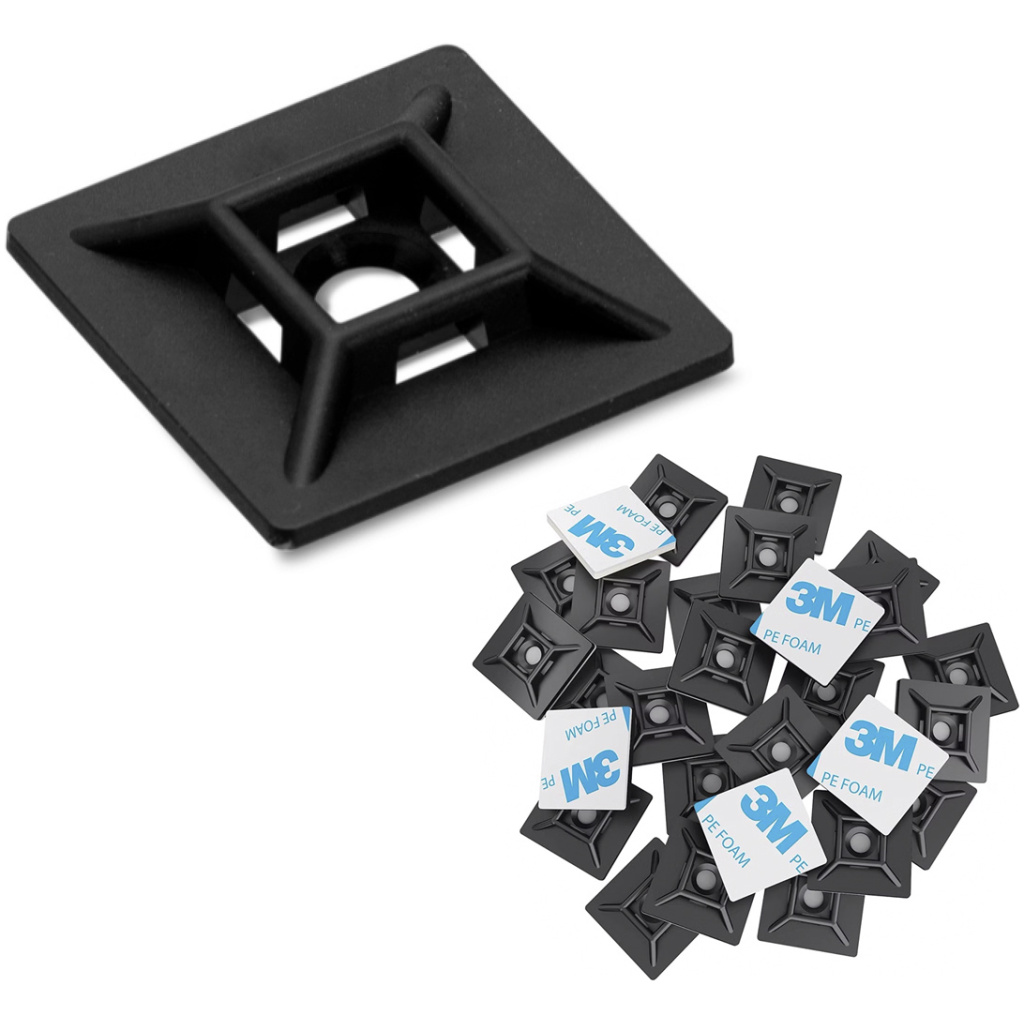POWERTECH βάσεις δεματικών καλωδίων TIES-081, 3M αυτοκόλλητο, 2.82×2.82cm, μαύρο, 50τμχ