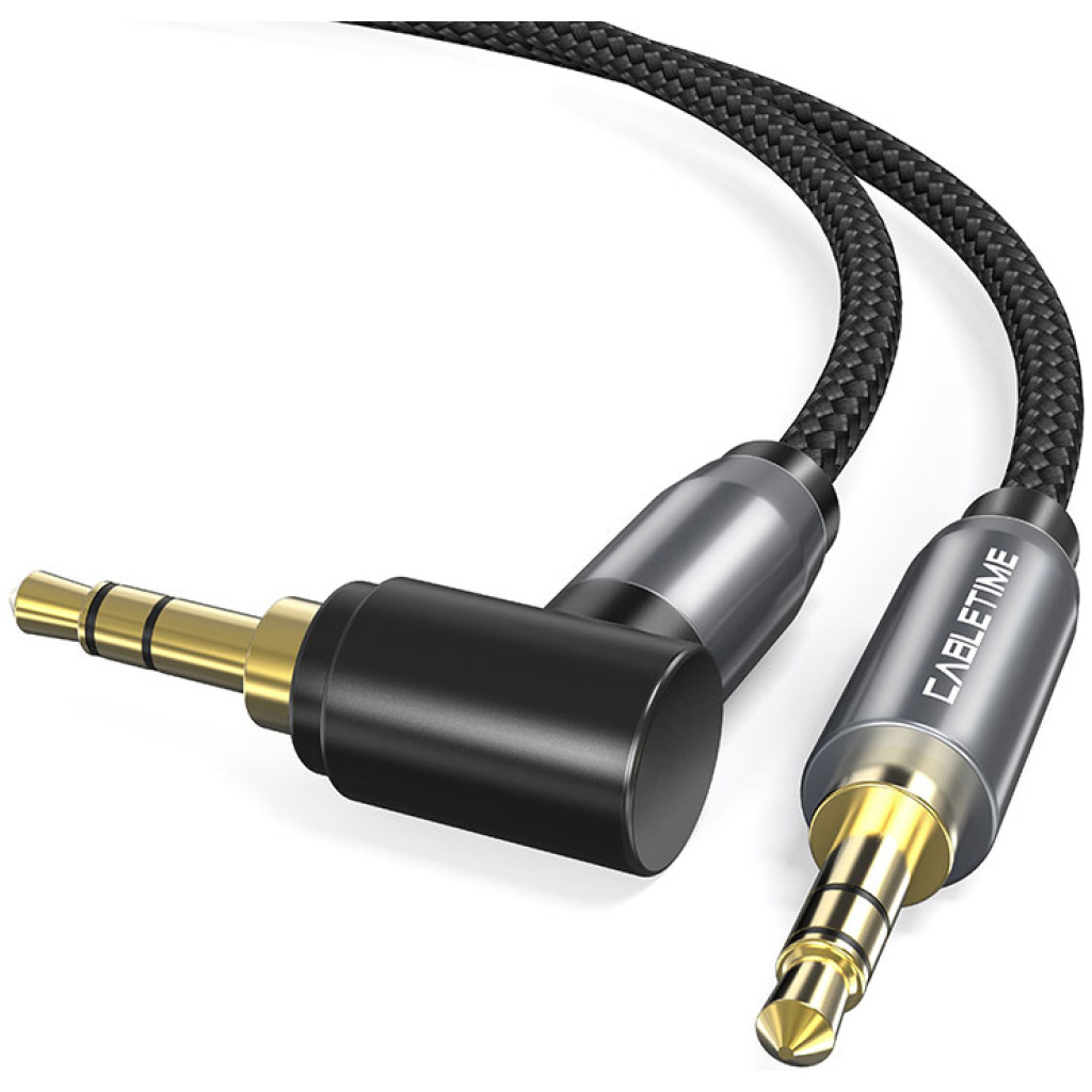 CABLETIME καλώδιο ήχου 3.5mm CT-P11RGN, γωνιακό, AUX, 1m, μαύρο
