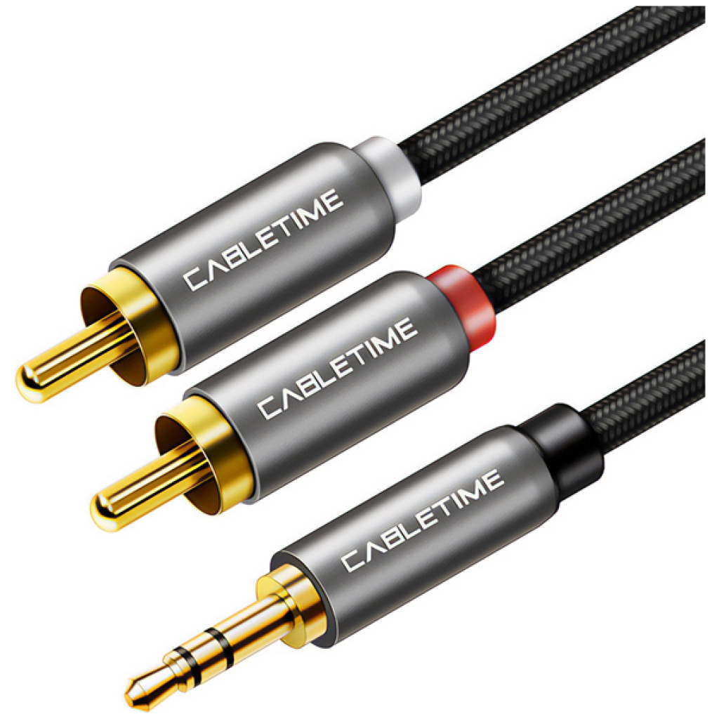 CABLETIME καλώδιο ήχου 3.5mm σε 2x RCA CT-P12G, 5m, μαύρο