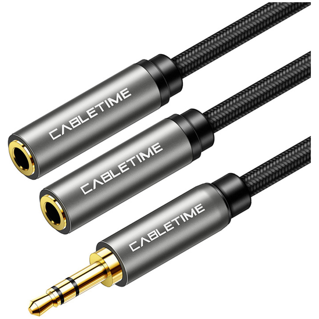CABLETIME καλώδιο ήχου 3.5mm σε 2x 3.5mm CT-P12G, 3-pole, 20cm, μαύρο