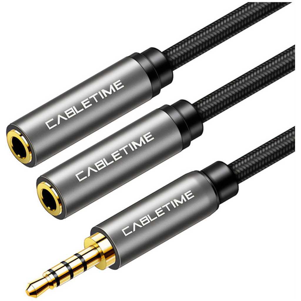 CABLETIME καλώδιο ήχου 3.5mm σε 2x 3.5mm CT-P12G4P, 4-pole, 20cm, μαύρο
