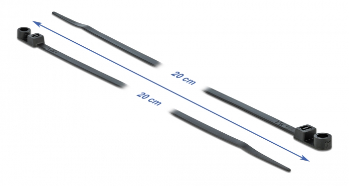 DELOCK Δεματικά καλωδίων 18950 με οπή στερέωσης, 200×4.8mm, μαύρα, 10τμχ