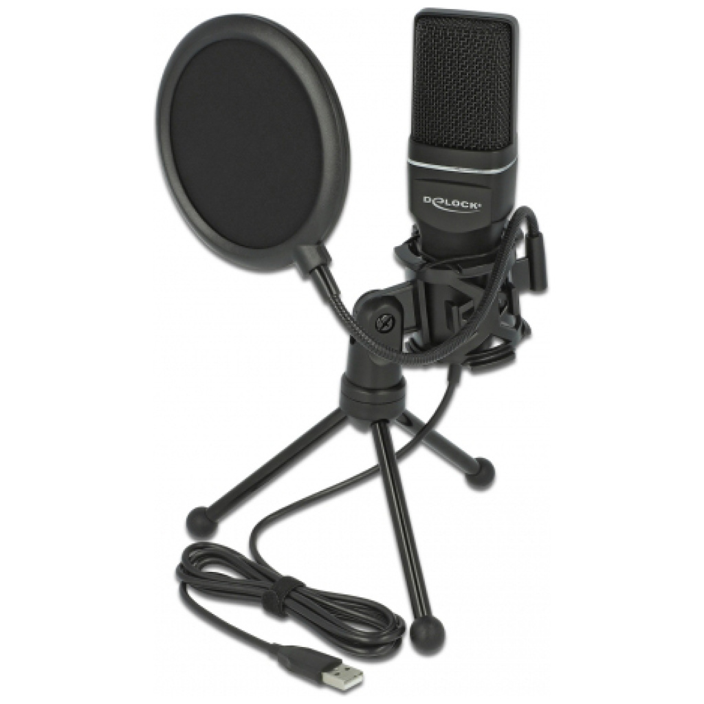 DELOCK Mικρόφωνο studio με pop φίλτρο & αντιανέμιο 66331, πυκνωτικό, USB
