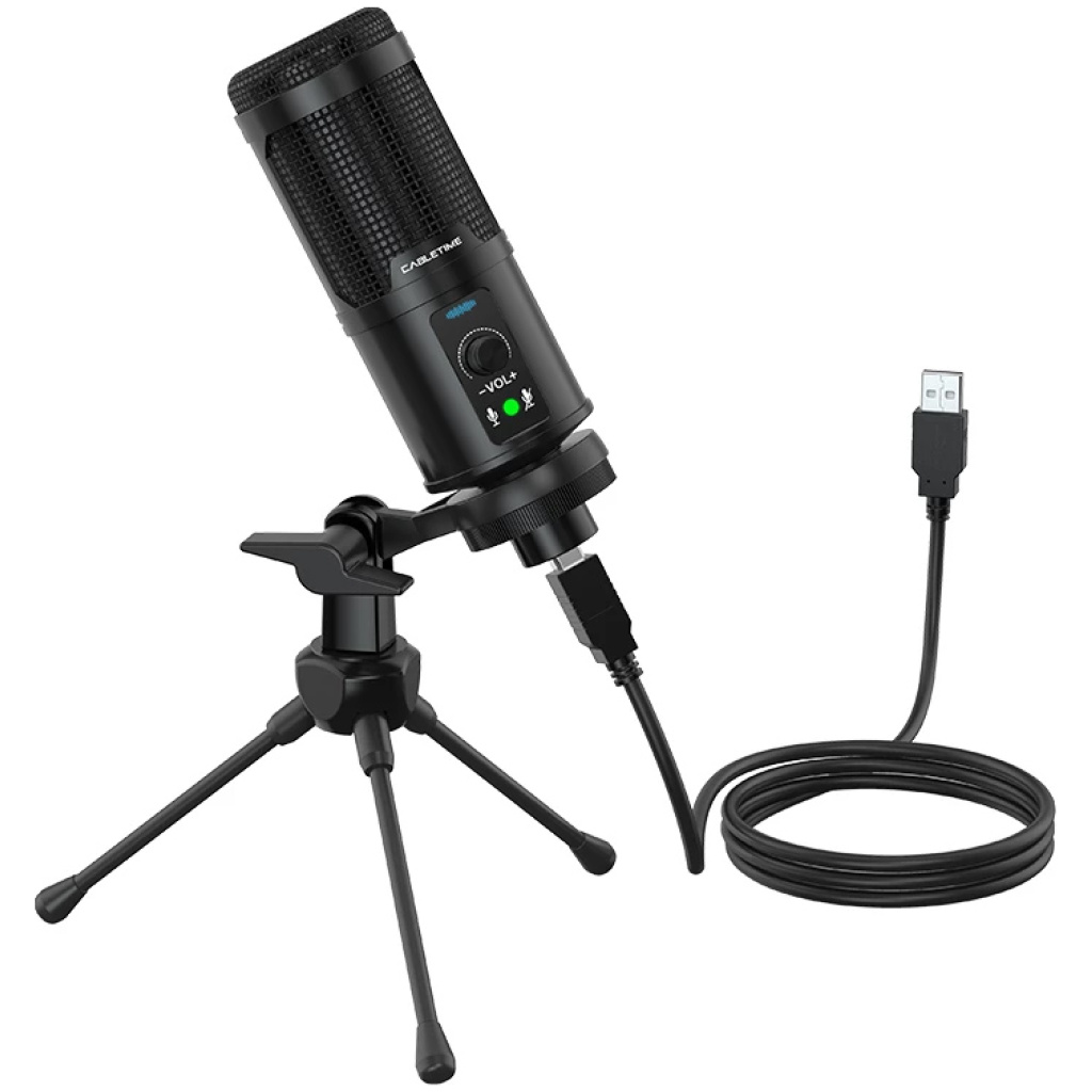 CABLETIME πυκνωτικό μικρόφωνο MP01-AB, με αντιανέμιο & τρίποδα, USB