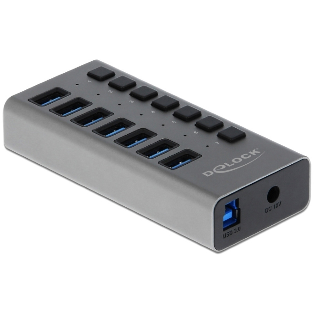 DELOCK USB hub 63264 με διακόπτες, 9x θυρών, 5Gbps, 12V/2.25A PD, γκρι