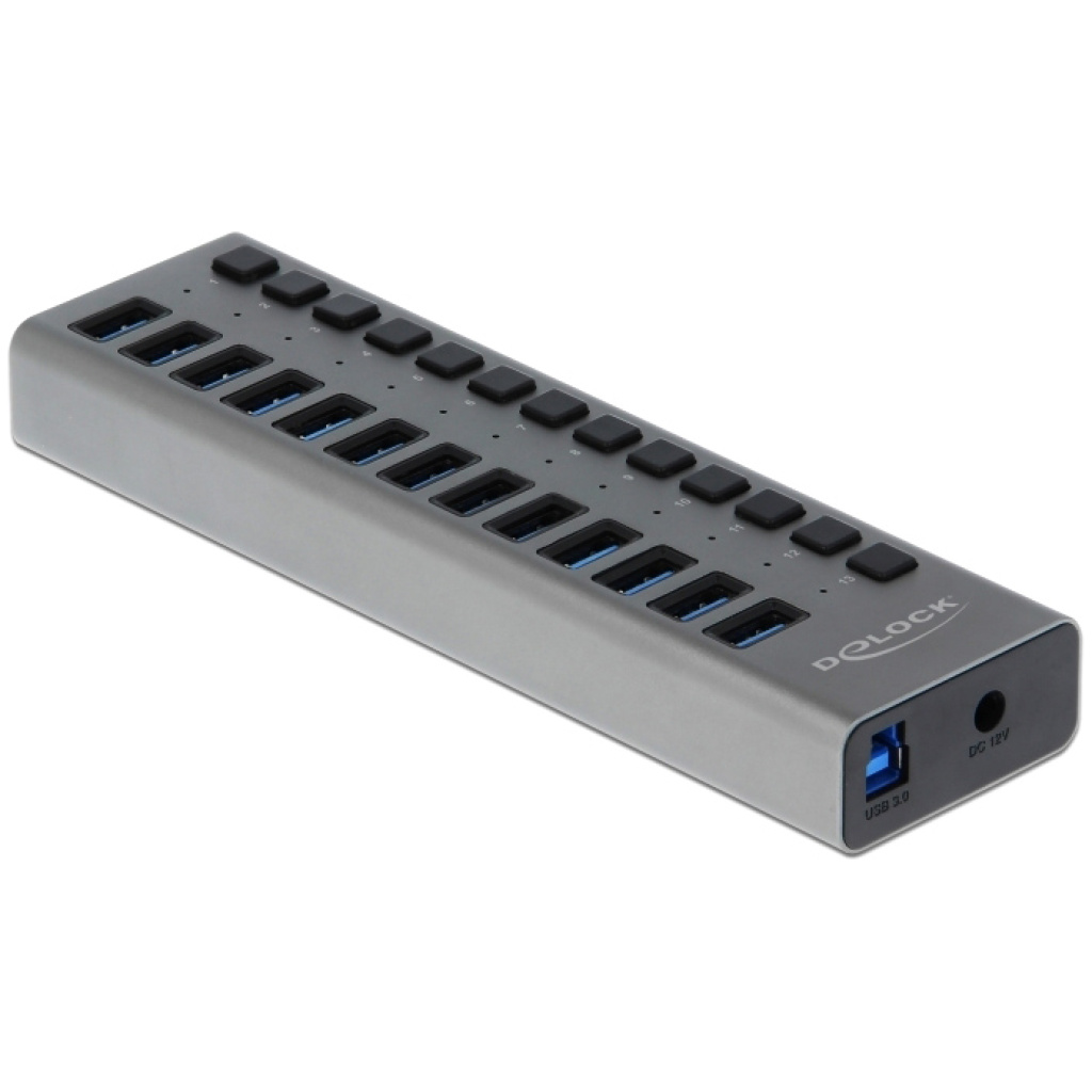 DELOCK USB hub 63738 με διακόπτες, 13x θυρών, 5Gbps, γκρι