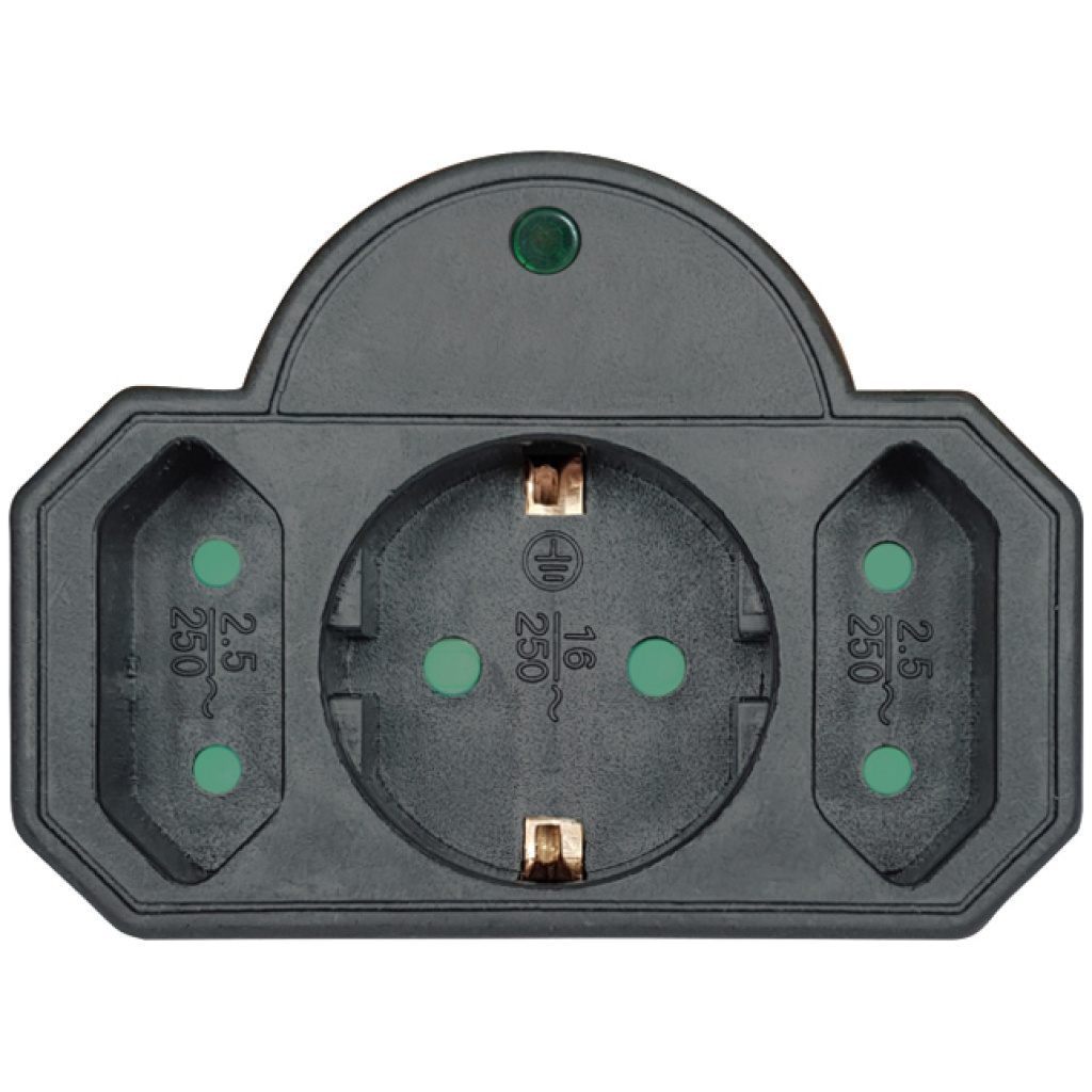 POWERTECH αντάπτορας ρεύματος PT-817, 1x schuko, 2x euro, 16A, μαύρος