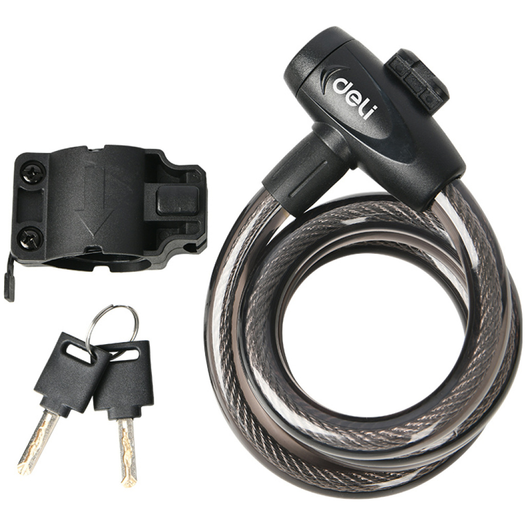 DELI κλειδαριά ποδηλάτου με κλειδί DL508021, Φ4mm, 1m, μαύρη