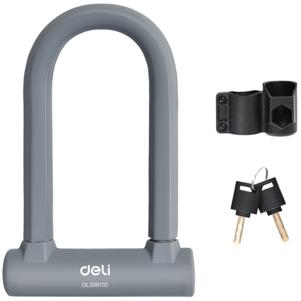 DELI κλειδαριά πέταλο ποδηλάτου με κλειδί DL508102, 126x196mm, γκρι