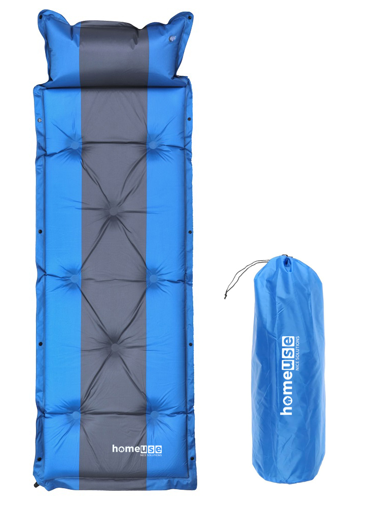 HOME USE αυτοφούσκωτο στρώμα HUH-0237 με μαξιλάρι, μονό, 192x60x3cm, μπλε/γκρι
