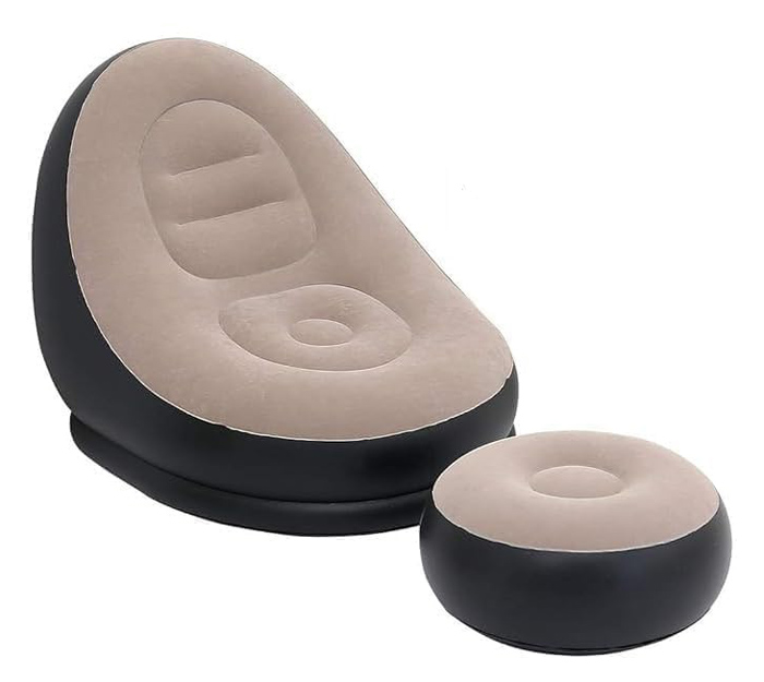 HOME USE φουσκωτός καναπές & σκαμπό HUH-0239, 116x98x83cm & 61x31cm, μαύρο/καφέ