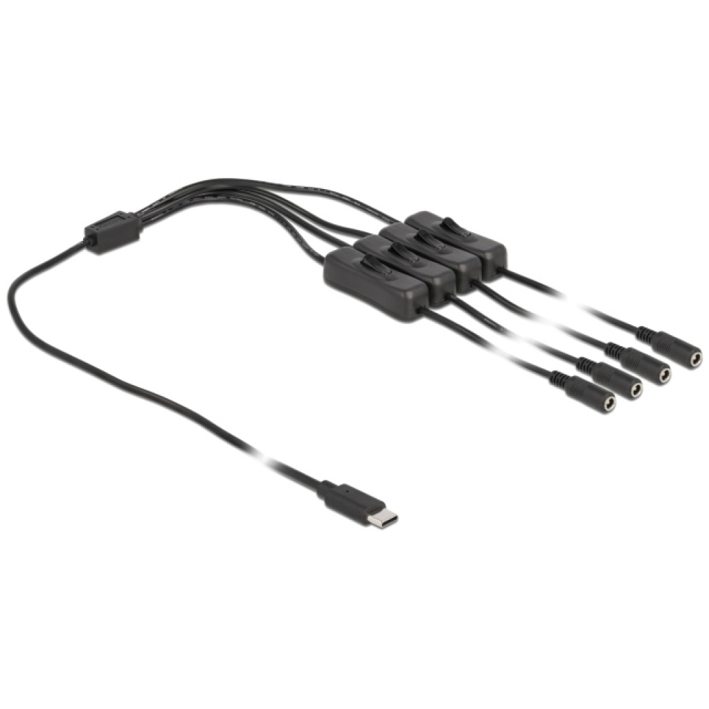 DELOCK καλώδιο USB Type-C σε 4x DC 5.5 x 2.1mm 86802, 1m, μαύρο