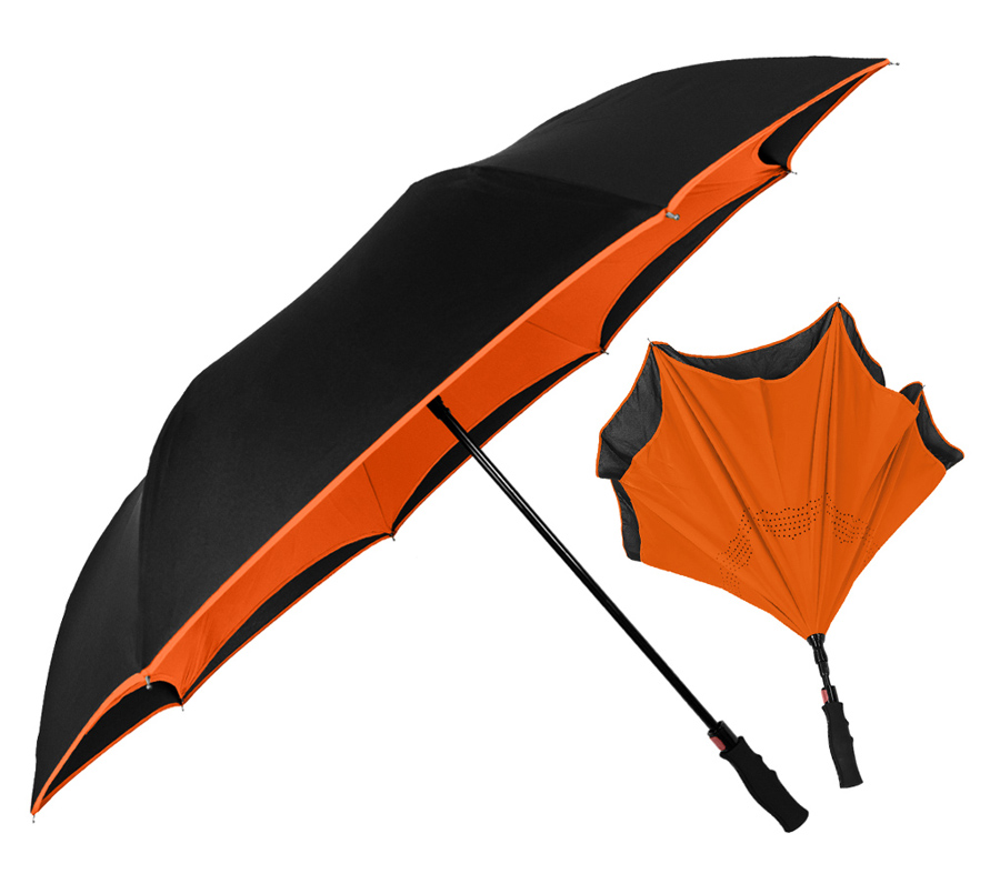 Η καινοτόμα ομπρέλα αντίστροφης δίπλωσης ανοίγει και κλείνει ανάποδα, παγιδεύει το νερό στο εσωτερικό της και αφήνει εξωτερικά, τη στεγνή πλευρά του υφάσματος, εμποδίζοντας το νερό να στάζει. Με εύκολο άνοιγμα και κλείσιμο σε περιορισμένους χώρους, δεν θα ξανά βραχείτε ενώ μπαίνετε στο αυτοκίνητό σας ή το σπίτι σας ενώ παράλληλα τα διατηρείται στεγνά.