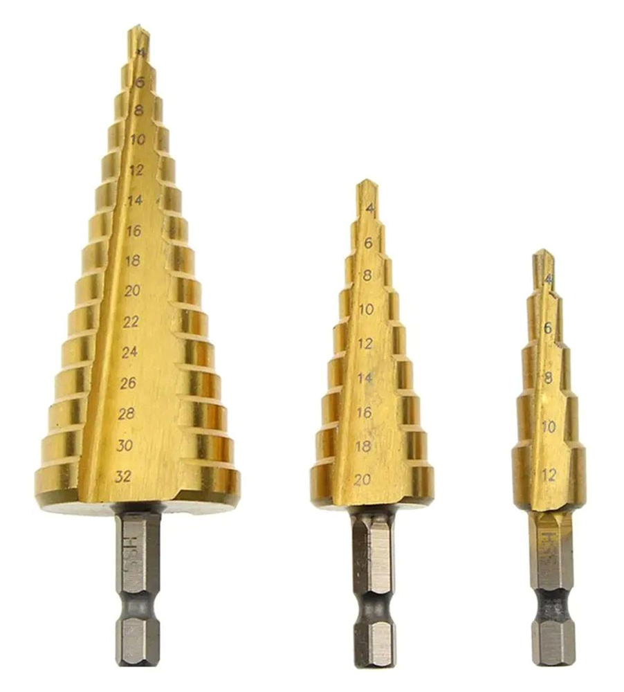 Σετ κωνικά τρυπάνια ιδανικά για την διάτρηση πλαστικών και μεταλλικών (χωρίς σίδηρο) υλικών. Διαθέτουν κοινή υποδοχή τύπου HEX που εφαρμόζει στα περισσότερα δραπανοκατσάβιδα της αγοράς. Το σετ αποτελείται από 3 κωνικά τρυπάνια.