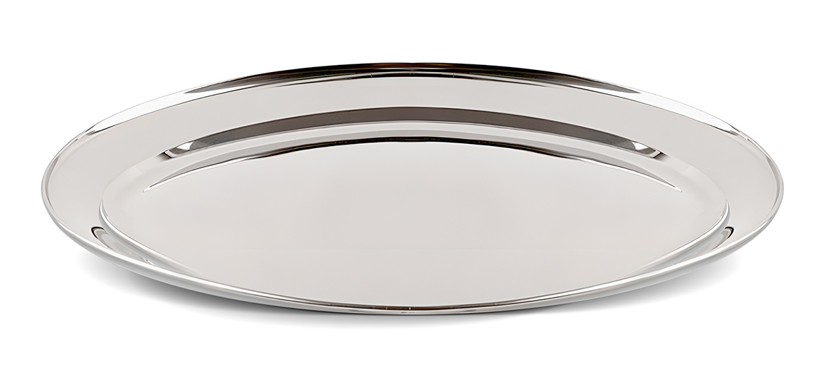 Πιατέλα σερβιρίσματος από ανοξείδωτο ατσάλι, ανθεκτική στην καθημερινή χρήση.