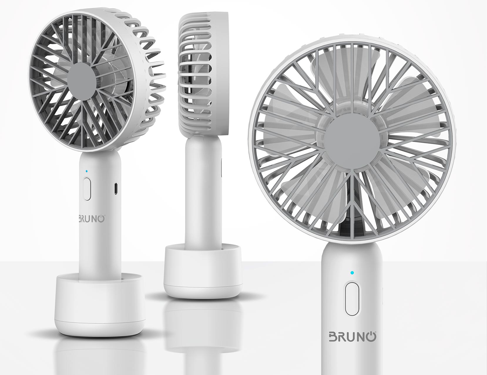 BRUNO BRN-0229 Φορητός ανεμιστήρας χειρός επαναφορτιζόμενος, με βάση και λουράκι μεταφοράς, λευκός-γκρί