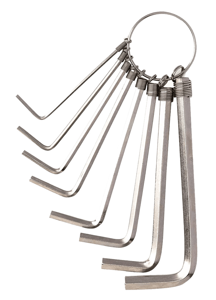 Σετ της Deli που αποτελείται από 8 εξάγωνα κλειδιά τύπου Allen. Είναι τοποθετημένα σε κρίκο για την εύκολη τοποθέτηση τους σε κλειδιά.