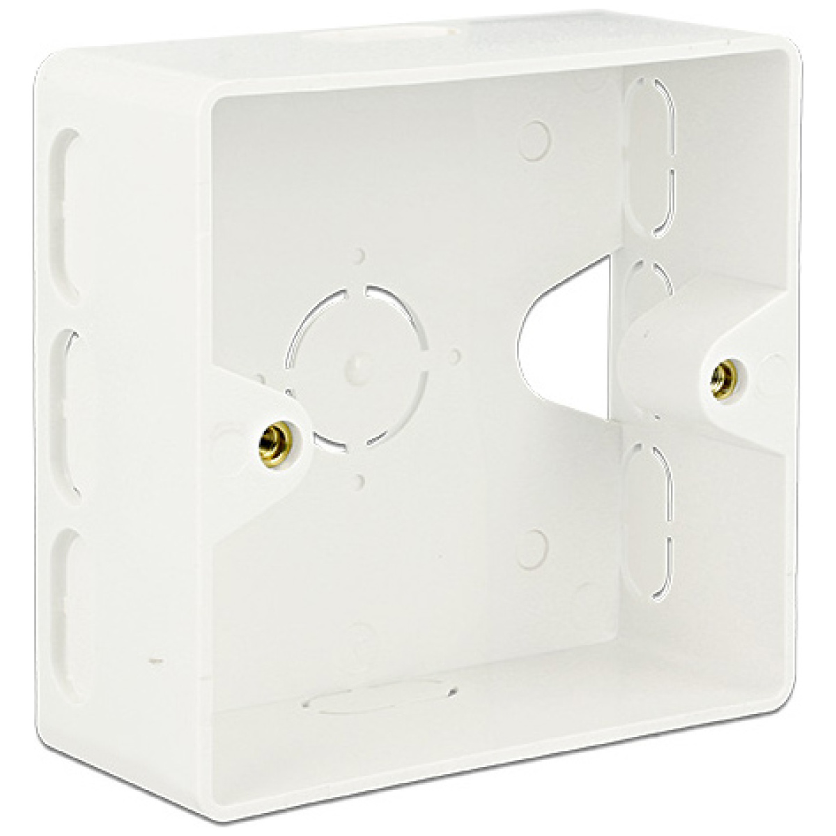 Οπίσθιο κουτί της Delock, μπορεί να χρησιμοποιηθεί για την επιφανειακή τοποθέτηση σε πρίζες τοίχου με υποδοχές των 60mm όπως της πρίζας τοίχου Delock Keystone 86202.