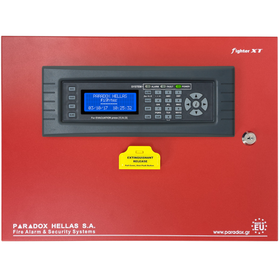 Συμβατικό κέντρο πυρανίχνευσης και κατάσβεσης 8 ζωνών & 8 ρελέ ▪ 1 περιοχής κατάσβεσης με 8 ζώνες ▪ Πληκτρολόγιο(-α) LCD για έλεγχο, απεικόνιση λειτουργιών και προγραμματισμό του συστήματος ▪ Μέγιστος αριθμός πληκτρολογίων ανά εγκατάσταση 8 ▪ 2 επιτηρούμενες έξοδοι σει- ρήνας ▪ Ενσωματωμένος κωδικοποιητής για την επικοινωνία του συστήματος με Κέντρο Λήψης σημάτων, πρωτόκολλο επικοινωνίας CID ▪ Σειριακή πόρτα σύνδεσης (RS232), για τον έλεγχο, απεικόνιση λειτουργιών και προγραμματισμό του συστήματος με την χρήση του ειδικά σχεδια- σμένου λογισμικού SmartView και του module RS-232 ▪ Απομακρυσμένος έλεγχος, απεικόνιση και προγραμματισμός του συστήματος μέσω σύνδεσης TCP/IP (προαιρετικό) και του SmartView λογισμικού ▪ Πιστοποιημένο σύμφωνα με τις απαιτήσεις της Ευρωπαϊκής οδηγίας EN 54.02, EN 54.04 και την ΕΝ12094-1 (μόνιμο σύστημα πυρόσβεσης – κατάσβεση με αέριο).