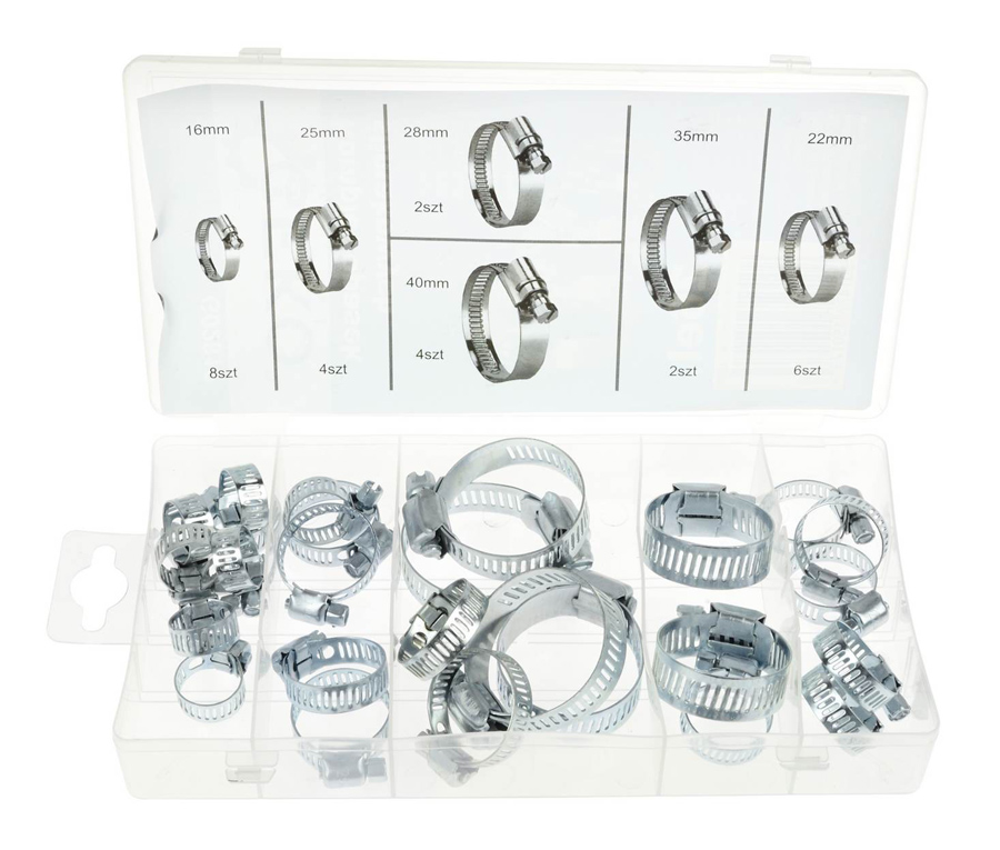 GEKO σετ μεταλλικοί σφιγκτήρες λάστιχων G02812, διάφορα μεγέθη, 26τμχ