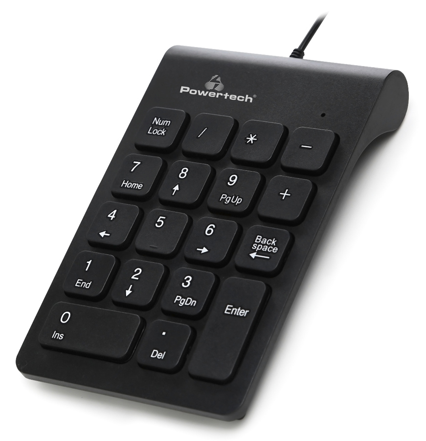 Ενσύρματο αριθμητικό πληκτρολόγιο της Powertech με 18 πλήκτρα και LED ένδειξη NumLock. Διαθέτει λεπτό και ελαφρύ σχεδιασμό και εργονομικά πλήκτρα που επιτρέπουν την άνετη και γρήγορη πληκτρολόγηση. Είναι ιδανικό για notebook ενώ η σύνδεση του γίνεται μέσω καλωδίου USB.