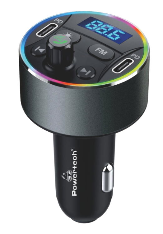 POWERTECH FM Transmitter & φορτιστής 40W PT-1027, οθόνη, RGB, Bluetooth
