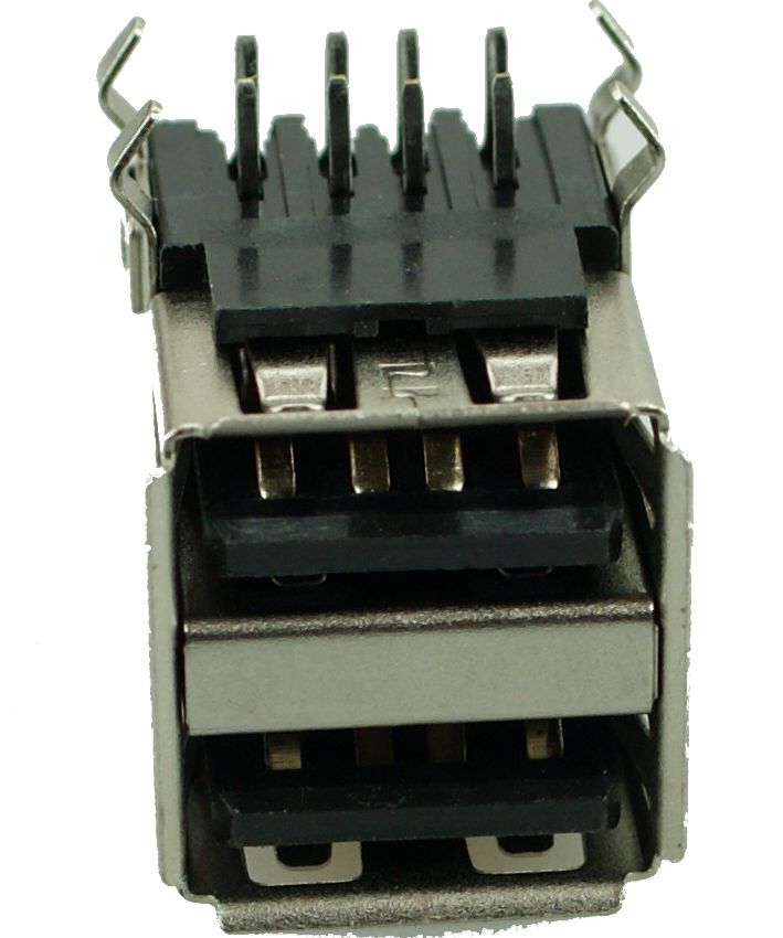 USB 2.0 Connector Double, up, Silver/Black