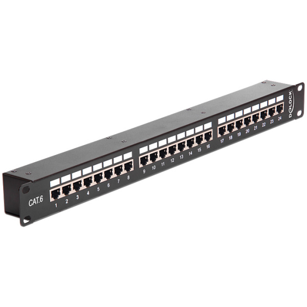 DELOCK patch panel 43295, 19"/1U, CAT 6, 24x coupler RJ45 ports, μαύρο