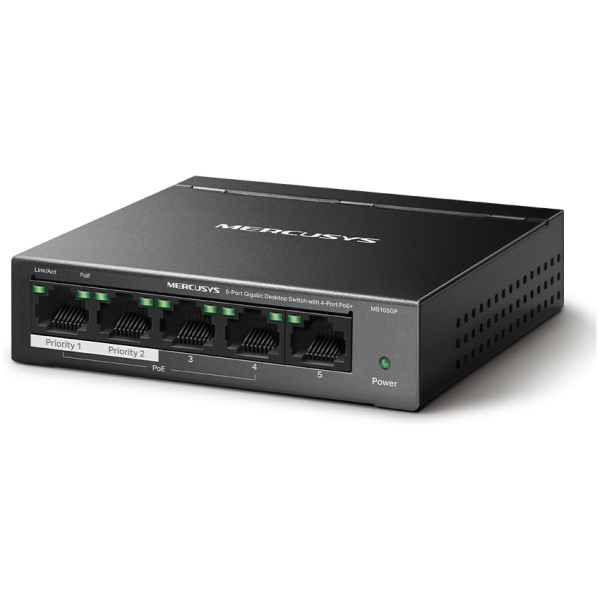 MERCUSYS Desktop Switch MS105GP, 5x 10/100/1000 Mbps, PoE+, Ver. 1.0