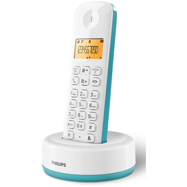 PHILIPS ασύρματο τηλέφωνο D1601S-34, με ελληνικό μενού, λευκό-μπλε