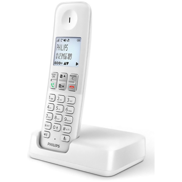 PHILIPS ασύρματο τηλέφωνο D1601W-34, με ελληνικό μενού, λευκό
