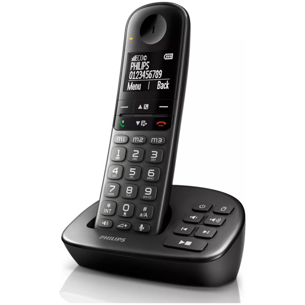 PHILIPS ασύρματο τηλέφωνο D1601B/34, με ελληνικό μενού, μαύρο