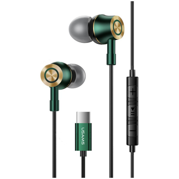 USAMS earphones με μικρόφωνο US-SJ482, USB-C, Φ10mm, 1.2m, πράσινα